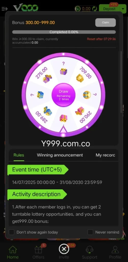 - Anniversary Carnival: Every year, this platform celebrates its anniversary and offers an event for the players to join. Players can have a chance to win up to Rs 10,000.